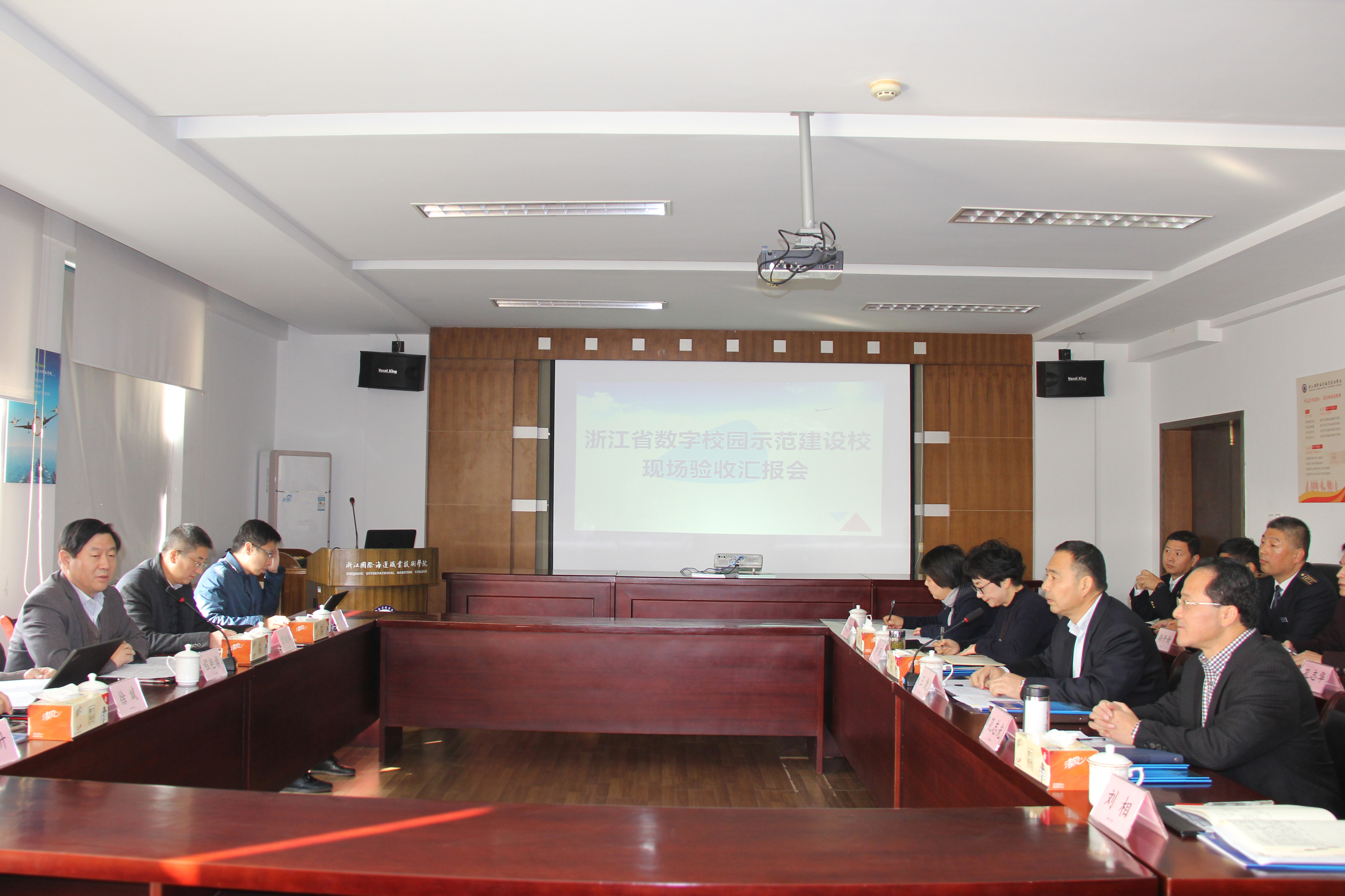 11月24日,由浙江省教育信息化工作领导小组办公室组织的专家组一行对我校数字校园示范校建设情况进行现场验收。学校信息化建设领导小组相关成员参加验收。