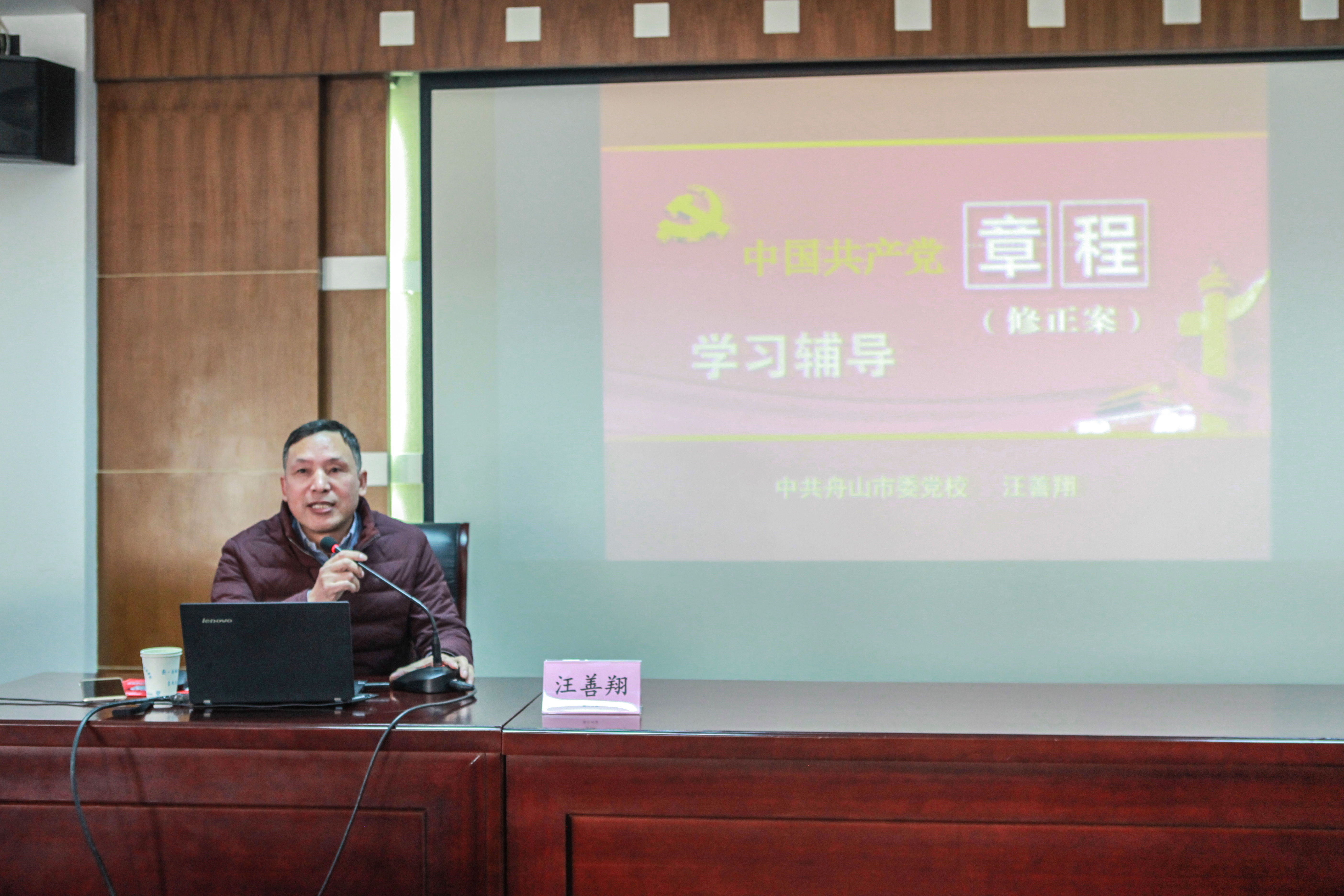 下午的培训会上,市委党校党建研究所副教授汪善翔作了《中国共产党章程(修正案)》学习辅导,汪教授从党章的重要作用、党章修改的原则、党章修改的内容以及如何贯彻新党章全面解读了新党章。