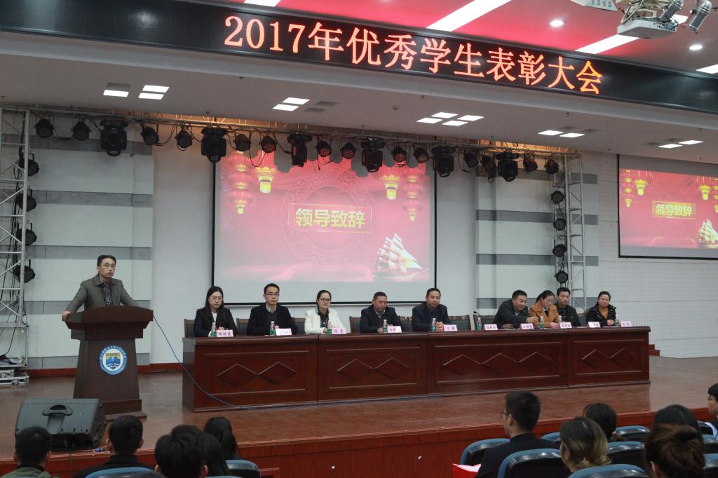 12月27日中午,学校在图书馆四楼报告厅举行2017年度优秀学生表彰大会,党委副书记、校长王捷,党委委员、副校长张新杰及相关处室负责人、优秀学生和先进集体代表出席会议。