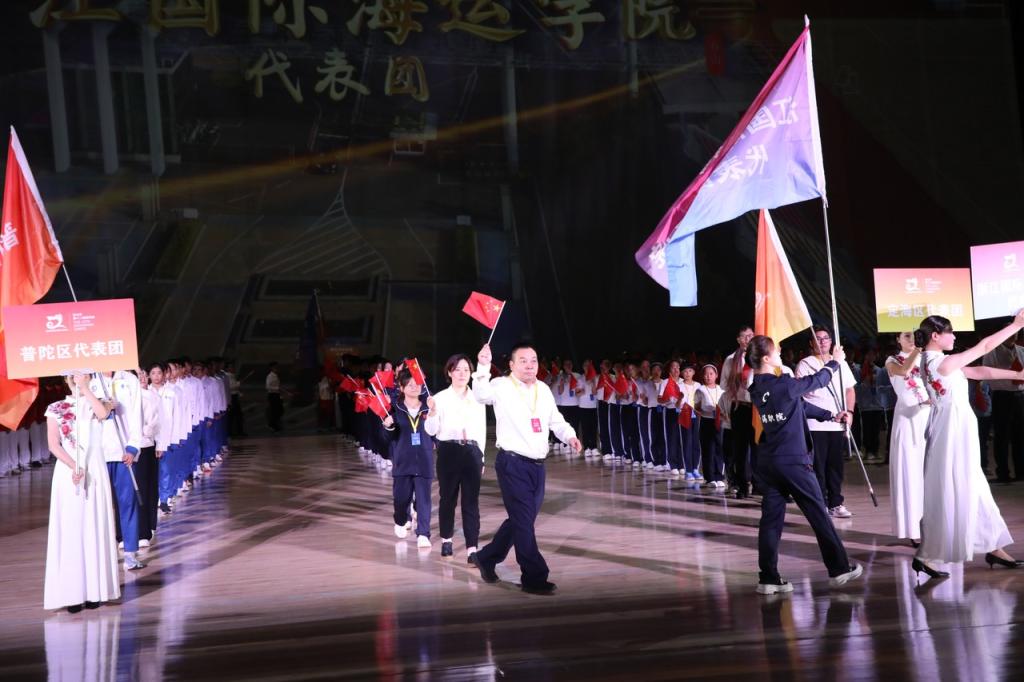 10月20日晚,舟山市第十二届运动会开幕式在舟山市体育馆举行。校党委副书记、校长吴中平出席开幕式并在主席台就坐,校党委委员、工会主席刘相莅临现场。开幕式上,伴随着昂扬的旋律,各代表团运动员方阵迈着矫健的步伐依次进场,并手持小国旗向观众们挥手致意,现场观众报以热烈的掌声。