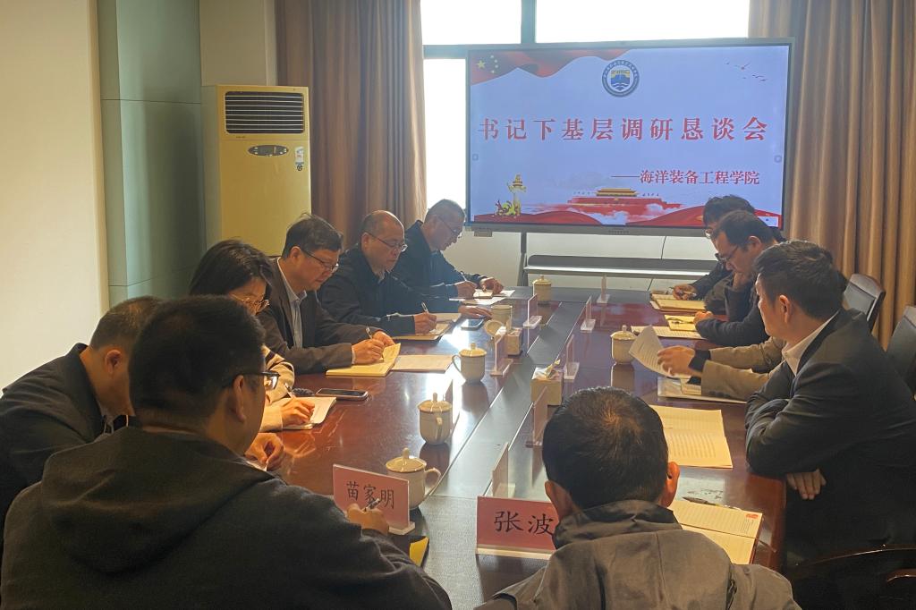 11月22日上午,党委书记苏为泽到海洋装备工程学院开展调研,学校办公室、科研与合作处、教务处、学生工作部等部门负责人陪同调研。海洋装备工程学院党政班子和骨干教师代表出席会议,会议由学院党总支书记罗秀峰主持。