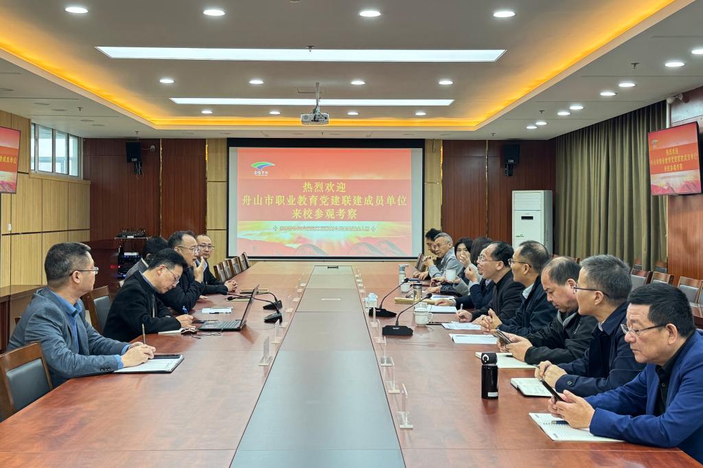 为深入学习贯彻习近平总书记关于党的建设的重要思想,充分发挥党建统领作用,推动职业教育领域的党建工作创新发展,11月21日,舟山市职业教育党建联建成员单位代表一行11人,在市教育局总督学邵伟康和我校党委副书记孔志光的带领下考察调研了杭州富阳学院(富阳区职业高级中学)和杭州职业技术学院。