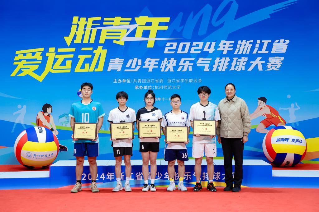 11月24日,由共青团浙江省委、浙江省学生联合会主办的浙江省青少年快乐气排球大赛在杭州师范大学体育馆落下帷幕,我校气排球队获得浙江省前八强的好成绩。