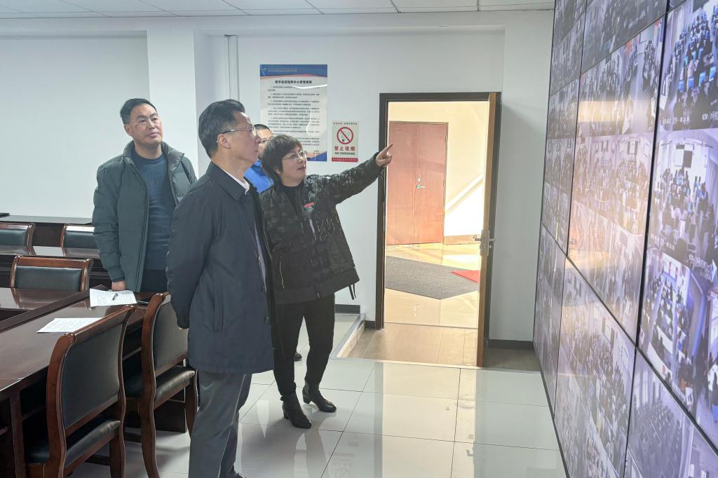 吴中平校长一行首先检查了教学监控中心。在监控中心,校领导们认真查看了各个教室的实时教学画面,详细了解了监控系统的运行情况。通过监控屏幕,领导们清晰地看到了教师们授课的状态和学生们的课堂表现。校领导仔细询问了教学监控中心的工作人员关于监控设备的维护、监控范围的覆盖以及监控数据的保存等方面的问题,并强调了教学监控在教学质量评估和教学管理中的重要性。工作人员向校领导汇报了教学监控中心在假期进行的设备升级和系统优化工作,确保在新学期能够更高效地为教学管理提供支持。