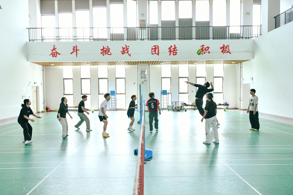 本次比赛共吸引省内46所高校,500余名运动员参赛。学校高度重视,3 月初,校团委便在全校范围内精心选拔出10名队员积极备赛。在刘大炜老师的悉心指导下,队员们每日清晨6点半准时在校体育馆开训,还充分利用晚自习时间,与浙江海洋大学排球队开展了多场友谊赛,以赛代练提升实力。校党委副书记孔志光、文化体育部部长王智明、校团委副书记余娜娜多次到场,向刻苦训练、挥洒汗水的师生们送上关心与鼓励。