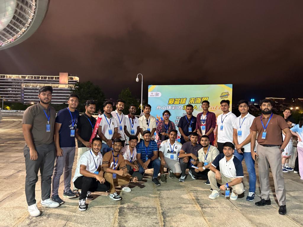 此外,学员们还参访舟山博物馆与城市馆展览,通过历史文物与城市规划模型,直观领略舟山作为“海上花园城”的发展脉络;现场观看浙BA舟山赛区篮球赛,与市民共同为球队助威,感受城市活力。培训期间,学员们与我校师生组织足球、篮球友谊赛,以体育为桥增进跨文化友谊。在舟山市定海区浙东礼学馆,学员们聆听关于浙东地区礼仪文化、儒家思想及舟山民俗的专题讲解,近距离感受中国传统文化的深厚底蕴。部分学员还亲身体验传统茶道、书法等文化活动,在工作人员指导下尝试书写汉字,体悟中国艺术的独特韵味。