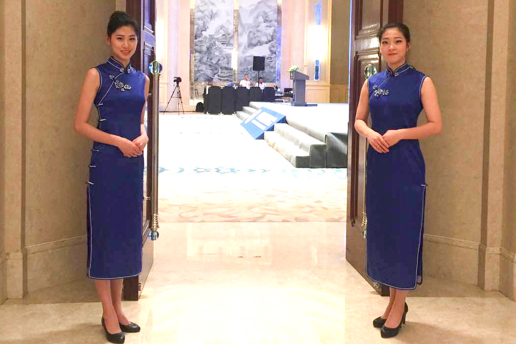 为保证热情、周到、高效地完成此次志愿服务工作,在大会服务动员后,5月30日、6月2日、6月3日,学校对40名志愿者开展了急救培训和礼仪培训。团学会志愿者负责威斯汀主会场的引导服务,会展区域的咨询引导、秩序维护服务;礼仪志愿者负责接待嘉宾和礼仪引导。他们活跃在会场内外,耐心礼貌地为国内外嘉宾提供咨询引导服务,每个志愿者都有自己的固定工作岗位,威斯汀主会场的签到区、楼梯和电梯口,保利大剧院以及会展区域等都留下了志愿者们青春的身影。在活动开幕式上,海洋旅游学院茶艺社选派的6位同学还配以古筝表演展示了茶艺、香道,引得来自世界各地的友人纷纷驻足欣赏留影。