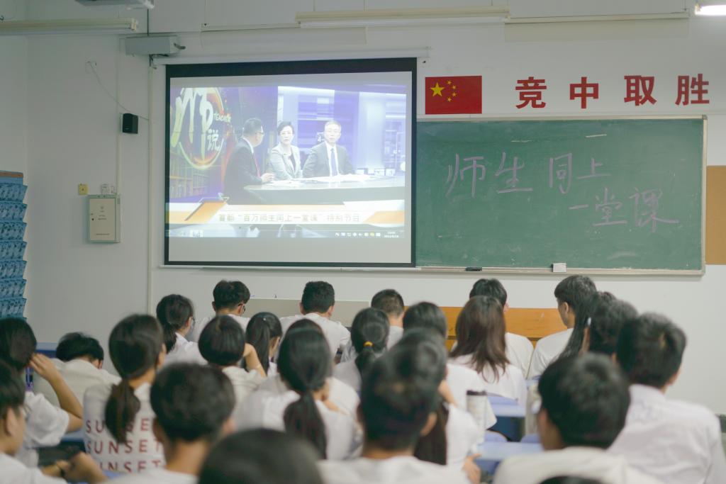 6月19日,学院组织全体学生利用晚自修时间在教室也认真收看了《百万师生同上一堂课》,教育引导广大师生把习近平总书记重要讲话精神内化于心,外化于行,切实将习近平总书记重要讲话精神转化为立德树人,培养和造就社会主义建设者和接班人的实际行动。(文/黄灵霞 图/童华年)
