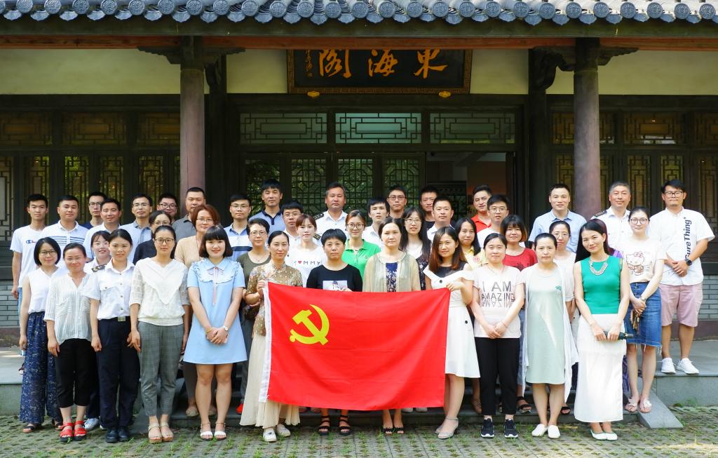 6月27日下午,在党总支书记吴平波的带领下,全体党员教师来到校内市级爱国主义教育基地——东海阁,缅怀先烈伟绩,重温入党誓词,集体庄严宣誓。