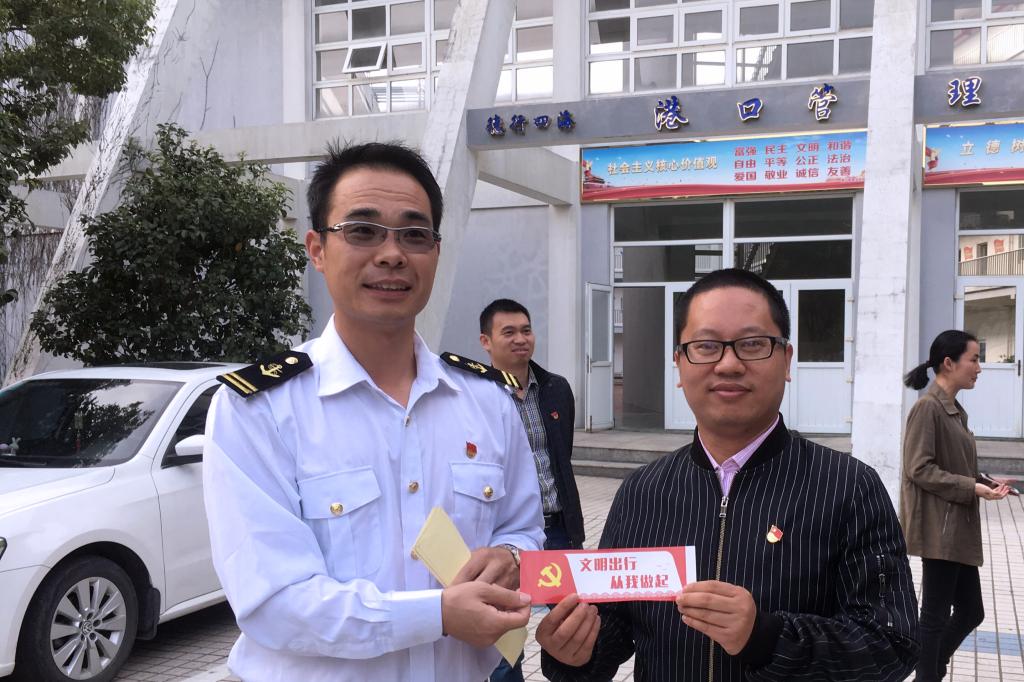 为了让每名党员牢记自己的第一身份、第一职责,切实增强广大党员的政治意识、大局意识、核心意识、看齐意识,时刻牢记党的宗旨,树立党员良好形象,近日,港口管理学院党总支组织开展了戴党徽、示范岗、文明行车等形式多样的“亮身份”活动,强化党员身份意识、责任意识。一名党员,倘若连自己的党员身份都不认同、不在意,“合格”二字势必无从谈起。做合格党员就要增强身份自信,敢于“亮身份”,并将其视为“必修课”。(图文/傅红波)
