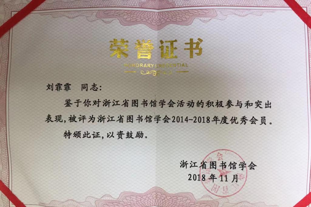 近日,从浙江省图书馆学会第九次会员代表大会上传来喜讯,我校图书馆的刘霏霏老师因在浙江省图书馆学会活动中的积极参与和突出表现,被授予“浙江省图书馆学会2014-2018年度优秀会员”光荣称号。全省共有95位同志获得该项殊荣,舟山市有4位。(图文/图书馆、信息中心)