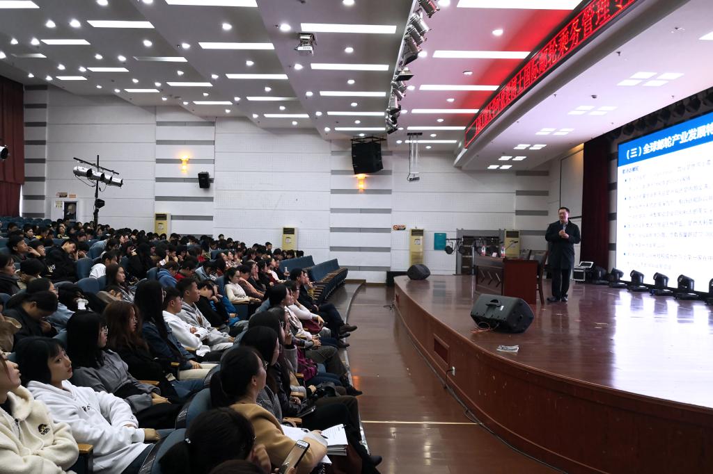 在报告会上,叶欣梁副教授从世界邮轮产业的发展历程说起,详细介绍了我国邮轮产业近十年的快速发展形势,分析了我国邮轮产业即将进入高质量全新时代的利好条件,分享了上海工程技术大学在国际邮轮管理学院建设、人才培养方面的经验和成果。整堂讲座信息量庞大,数据丰富且详实,内容涵盖邮轮历史、邮轮地理、邮轮经济和邮轮政治,为全体师生描绘了国际邮轮产业发展的美好前景,增强了学生的职业向往。
