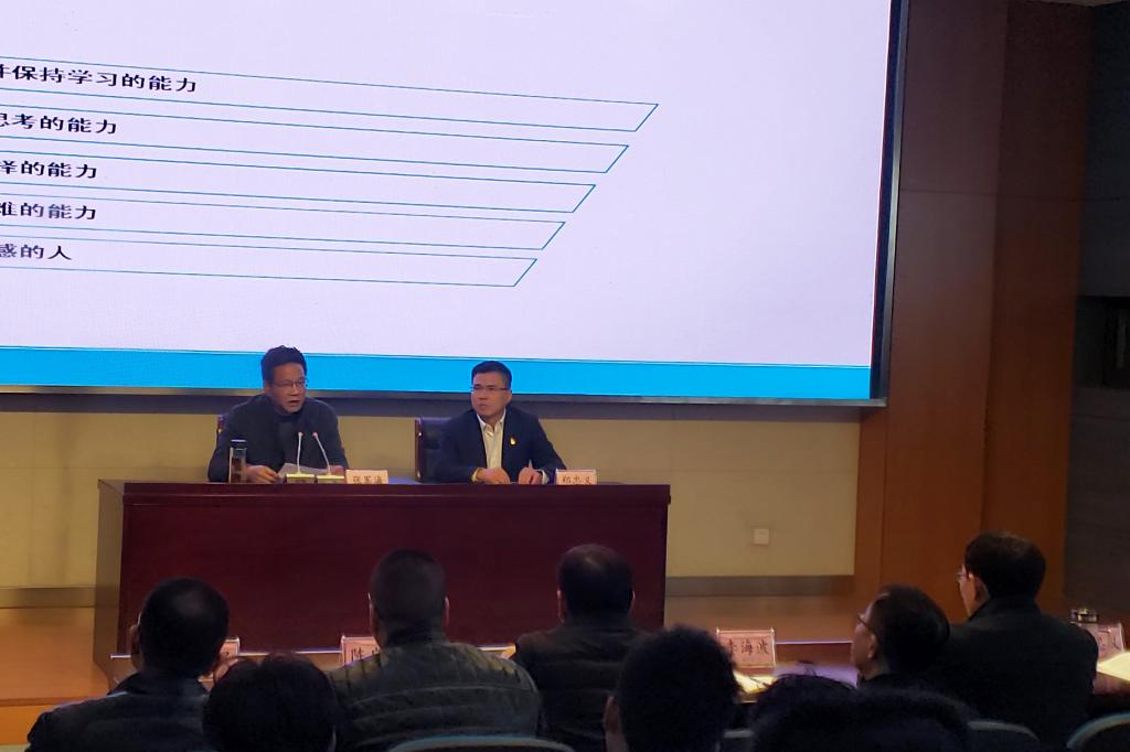 张军海副县长与师生们分享了他的人生经验和工作经验:要保持终身学习的能力、要培养独立思考的能力、要具备发挥比较优势的能力、要有矢志不移苦中作乐的能力、要具有实现使命感的能力。