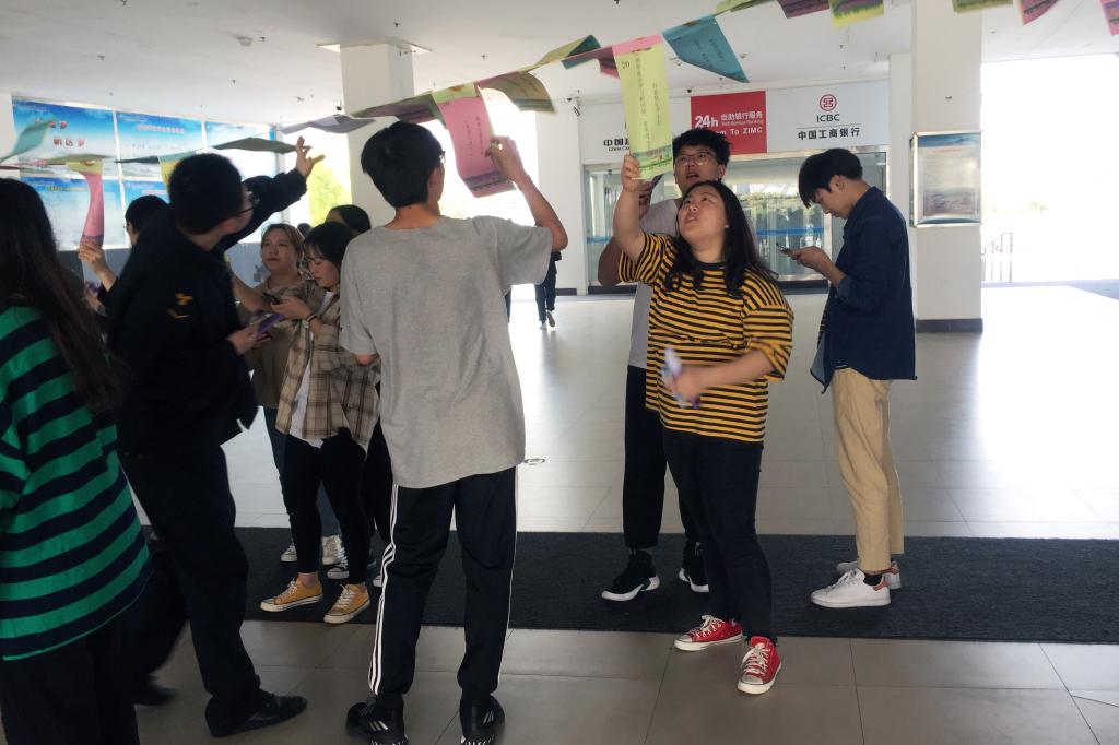 开幕式后,本届读者服务月开启了第一项活动“忆往昔,看今朝”猜谜活动,现场人头攒动,师生们或苦思冥想,或轻声品读,或悄悄讨论,乐在其中。