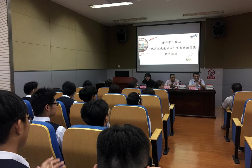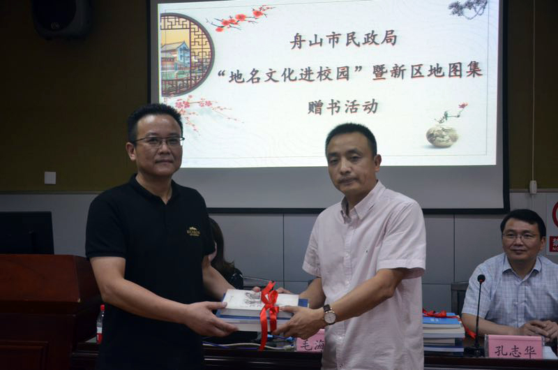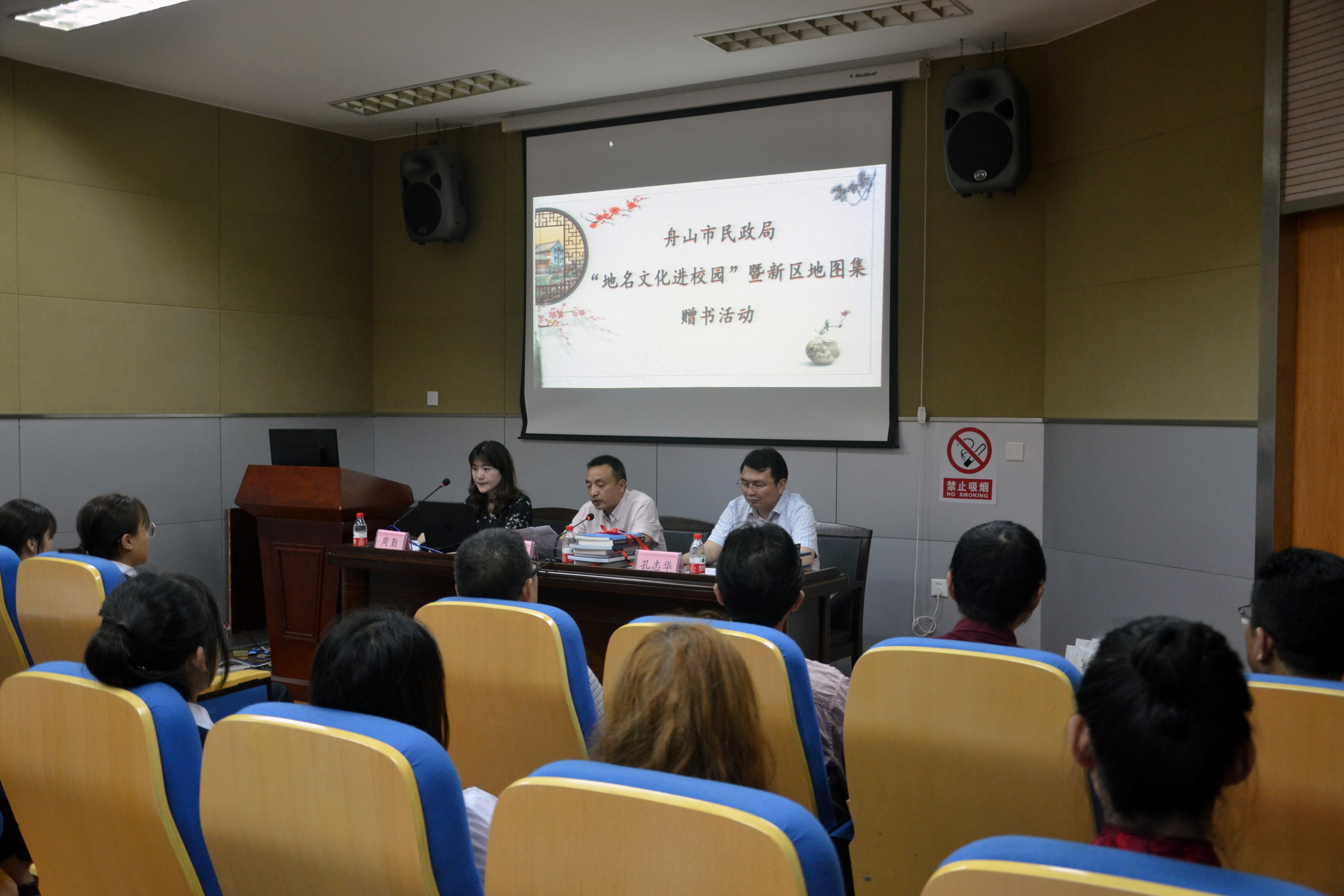 舟山市民政局“地名文化进校园”暨新区地图集赠书活动在我校举行