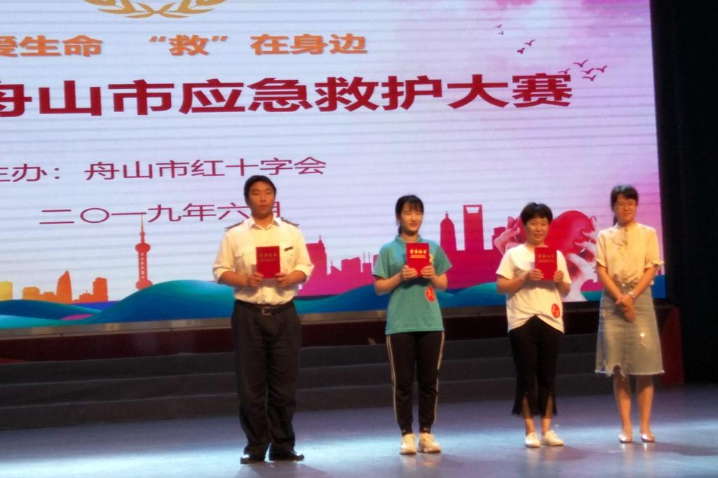 6月19日,在浙江海洋大学举行的2019年“舟山市红十字应急救护大赛”中,我校徐赛飞同学从众多选手中脱颖而出,荣获心肺复苏赛项第二名。我校获团体优秀奖。廖克同学的演讲《红十字,我心中的感动》朝气蓬勃、激情昂扬,极具感染力,也赢得了听众和评委的一致好评。