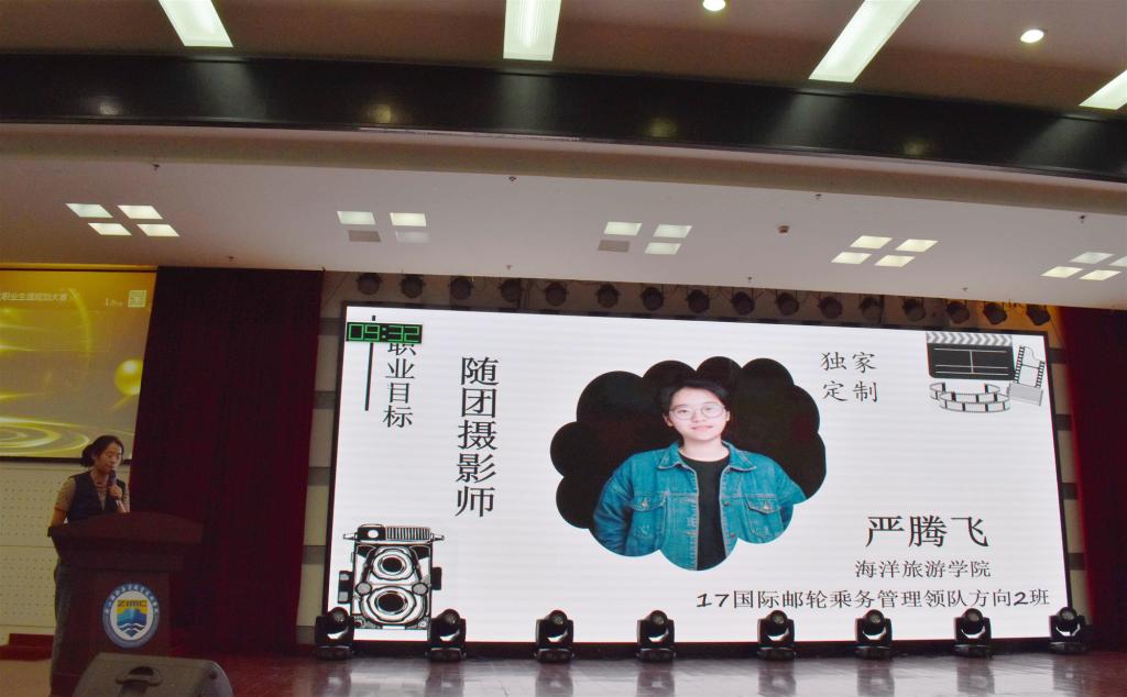 来自国际教育学院的宋健豪同学给大家带来的《“智”时代畅想》凭借扎实的功底、流畅的演绎、巧妙的回答在比赛中脱颖而出,最终获得一等奖,海洋旅游学院的严腾飞和张楚雨同学获得二等奖。获奖优秀作品将被选送参加全省的大学生职业规划大赛。(图文/招生与就业指导办公室)