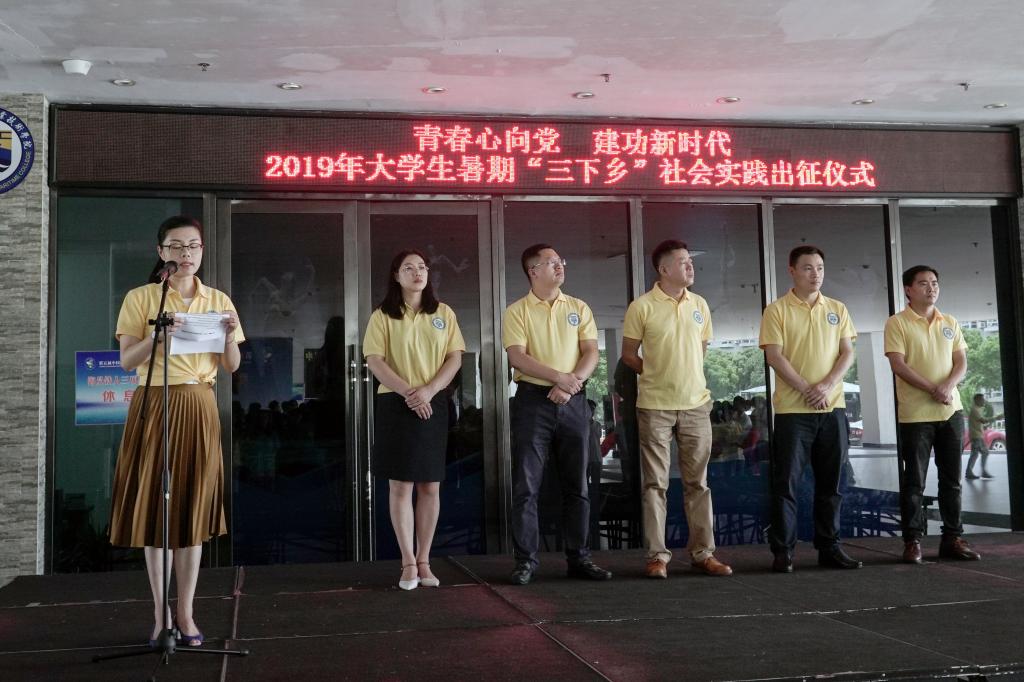 各二级学院党总支(支部)和校院二级团委负责人、社会实践团队指导老师代表、学生代表参加了本次出征仪式。校团委副书记邬加白主持仪式。仪式上,学生代表做表态发言,他呼吁同学们在社会实践中时刻牢记我校“德行四海”的校训,勇于砥砺奋斗,展现新时代大学生求真务实、奋发进取的精神面貌。校团委副书记廉婧向即将奔赴各地开展暑期社会实践的师生们致以良好祝愿,并对同学们提出了希望和要求。