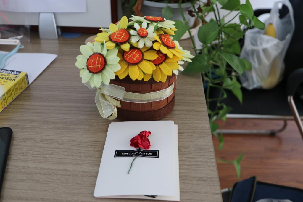 “三尺讲台一柄戒尺,回首只闻桃李芬芳”。9月10日是第三十五个教师节,国际教育学院分团委和学生会的同学们积极响应学校清廉节俭号召,在贺卡上写上了自己对教师们的感恩之情,学院手工社的同学们则利用课余时间,制作了精美的手工花,小小的礼物承载着同学们大大的心愿。