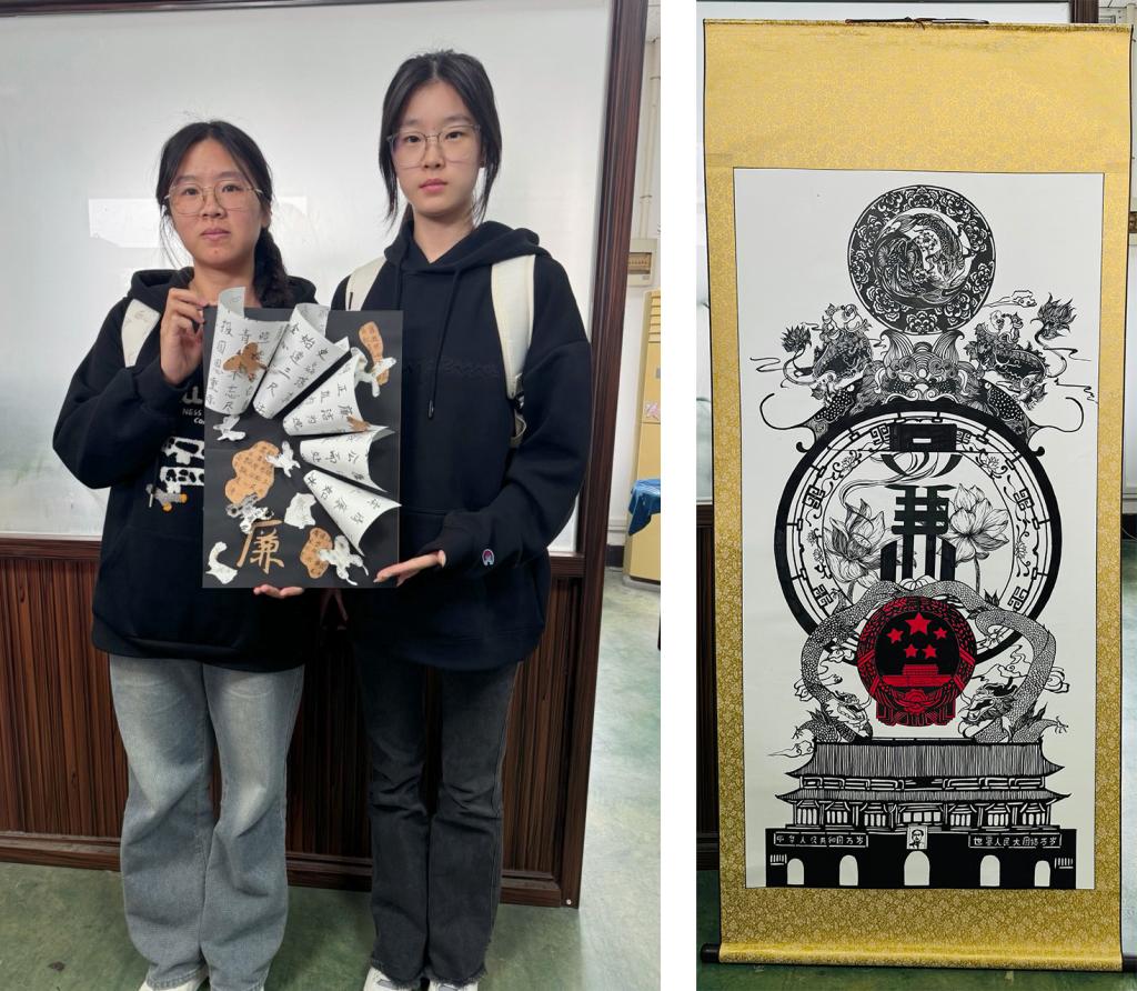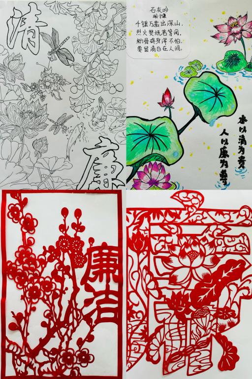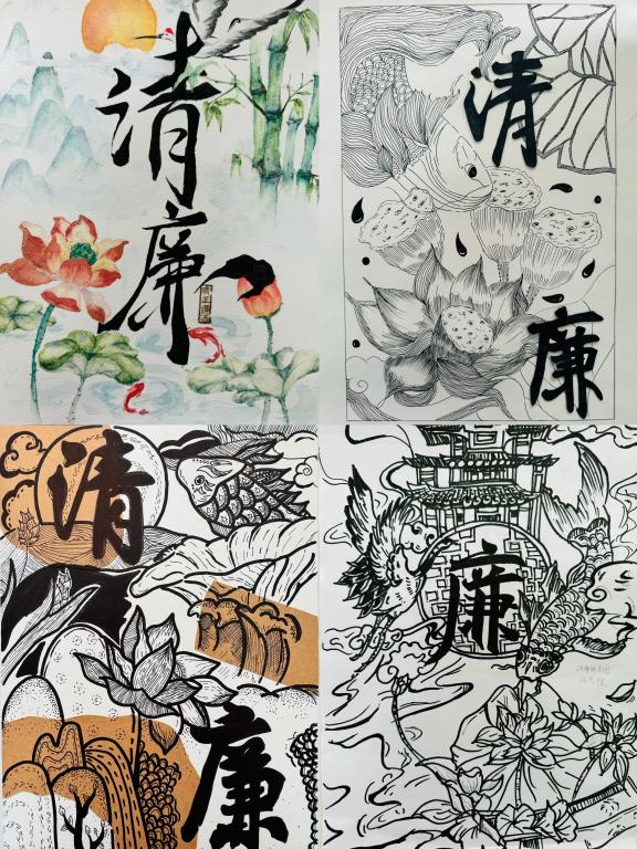 参与师生围绕廉洁题材、清廉人物等展开了精彩的书画艺术创作。他们以细腻的笔触,描绘出一幅幅寓意深刻的画卷,或是高洁的莲花绽放在碧波之上,象征着廉洁自律的品性;或是绿竹生长在高山之巅,展现着两袖清风的高尚气节,仿佛将廉洁的精神通过笔墨注入到每一幅作品之中。