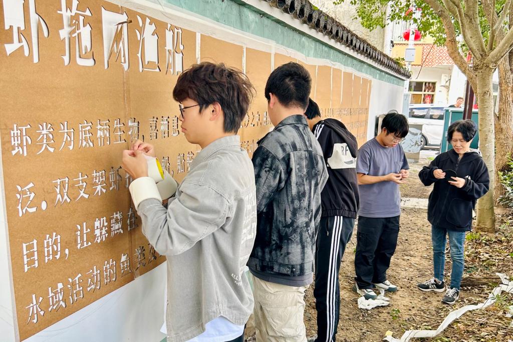 同学们通过构型、上色、细节处理,字体喷绘,围绕虾、蟹、渔船、捕捞作业等海洋特色元素和场景,运用所学专业技能进行创意设计和喷绘,让原本空白的墙壁充满“海味”,实现了“一墙一风景”“一墙一文化”。
