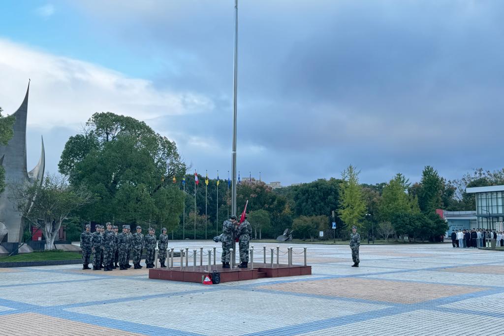 11月11日,伴随着庄严的《义勇军进行曲》,鲜艳的五星红旗迎风招展在朝阳中冉冉升起。升旗仪式由国际教育学院学生会主席林伊涵同学主持,学院全体辅导员、在校学生参加了升旗仪式。