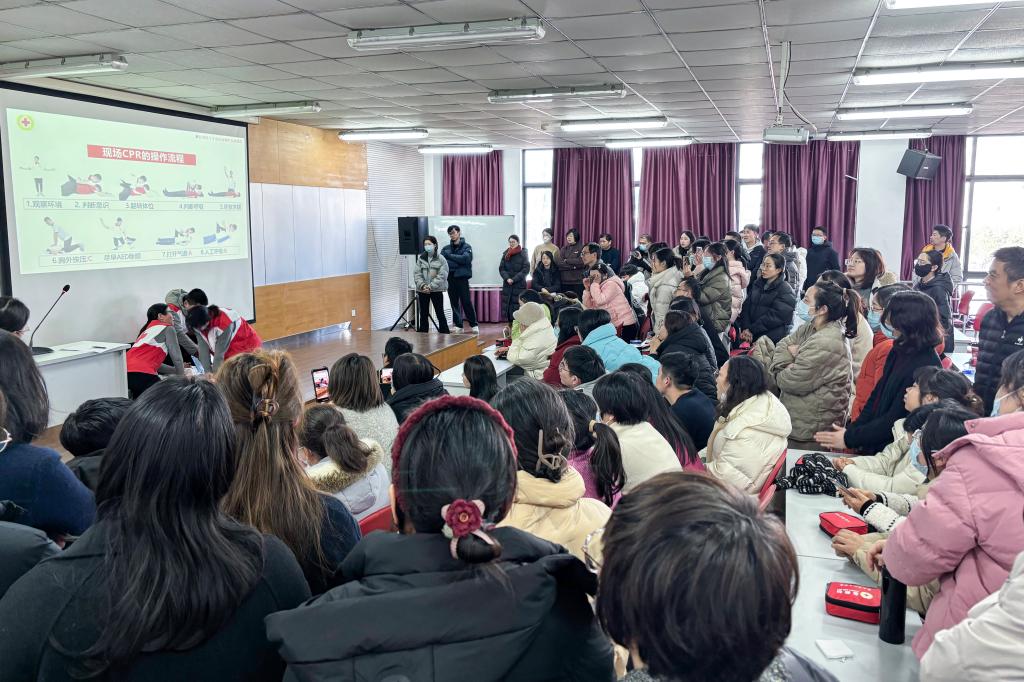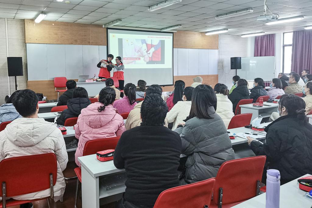 呵护生命、“救”在身边。为进一步提高学校教职工应急救护能力与安全意识,切实保护师生身体健康和生命安全,1月15日,校红十字会联合学生处在国际海员培训楼举行教职工救护员取证培训。此次培训采用线上“来浙学急救”微信小程序理论学习8课时及理论测试,线下实操培训+考核等形式进行,受到老师的广泛欢迎与积极参与,共有119人报名参加培训。