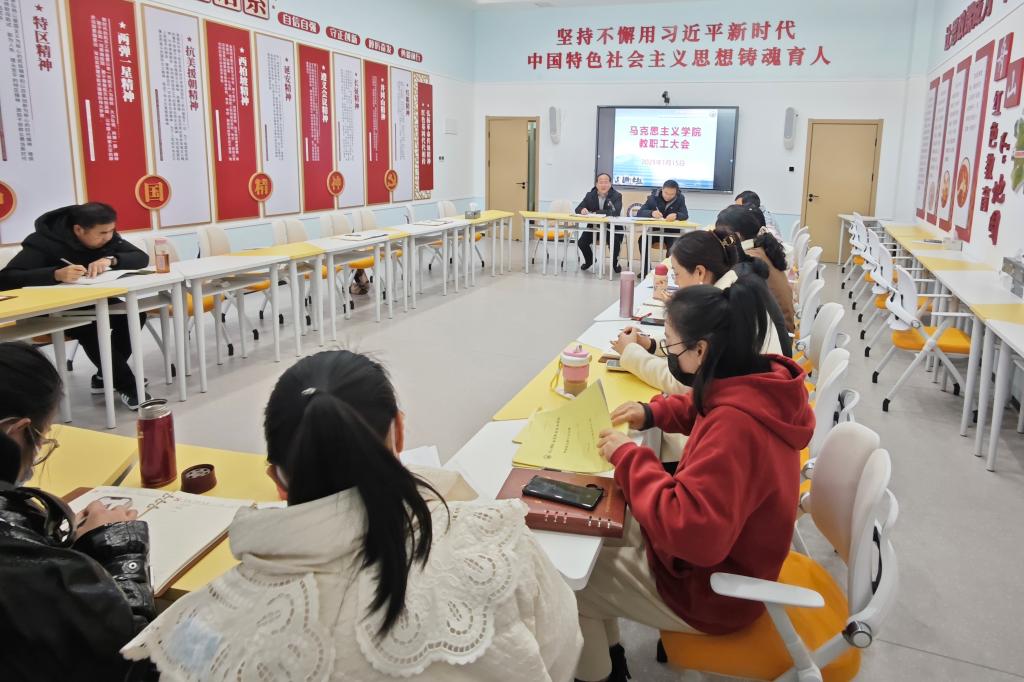 1月15日下午,马克思主义学院在图书馆思政智慧教室召开期末教职工大会,会议由院长胡明扬主持,校党委副书记孔志光应邀参加会议。