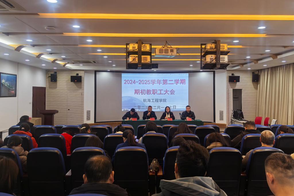2月17日下午,航海工程学院在国际海员培训楼306报告厅召开新学期教职工大会。会议由学院党总支书记徐盈主持,全体教职工参加会议。