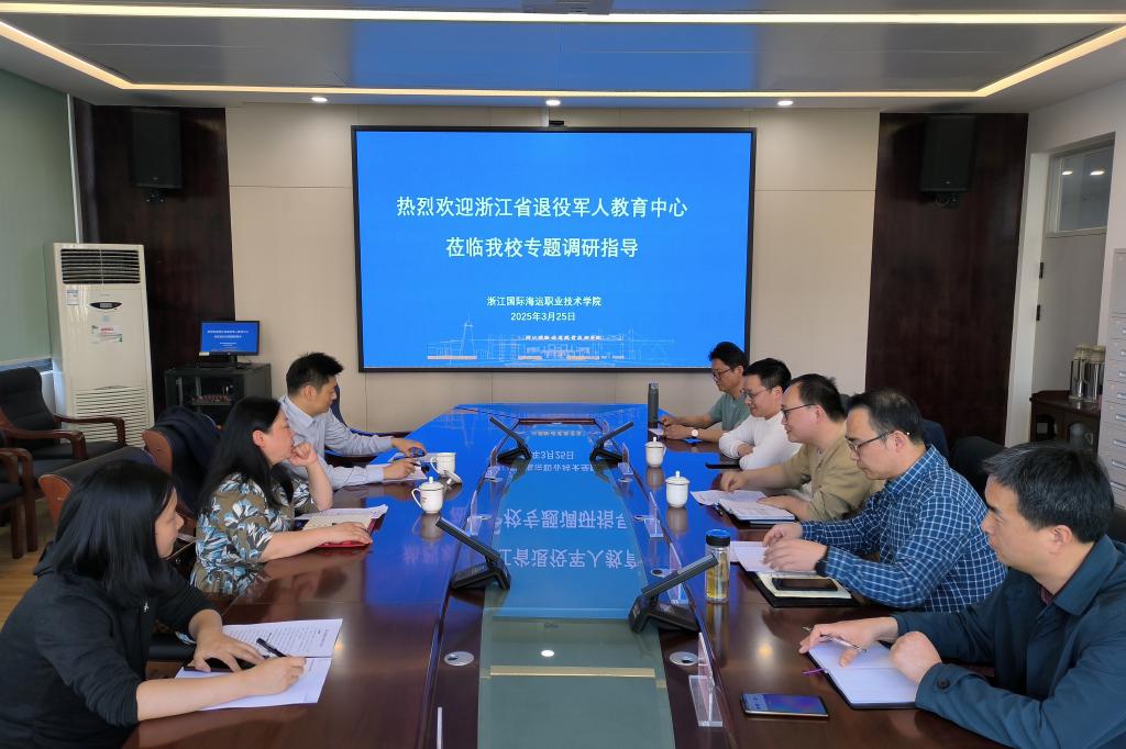 3月25日下午,浙江省退役军人教育中心副主任徐晓洁一行3人到我校开展退役军人教育培训工作专题调研指导。调研就深入贯彻习近平总书记关于退役军人工作重要论述,认真落实省厅关于退役军人教育培训工作有关要求,推进全省退役军人教育培训形成合力,打造“崇军浙江”教育品牌开展深入交流。舟山市退役军人事务局思想政治和权益维护处(就业创业处)处长张维、我校东海教育学院(职业培训中心)院长(主任)苏峰、海洋装备工程学院项目负责人等参加调研座谈会。