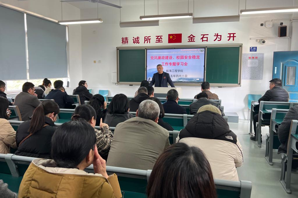 为认真贯彻落实学校2025年全面从严治党暨党风廉政建设、“清廉海运”建设及校园安全稳定工作会议精神,42日下午,航海工程学院在海慧楼215教室召开了党风廉政建设及校园安全稳定工作专题学习会,学院全体教职工参加,会议由综合办主任姜波主持。