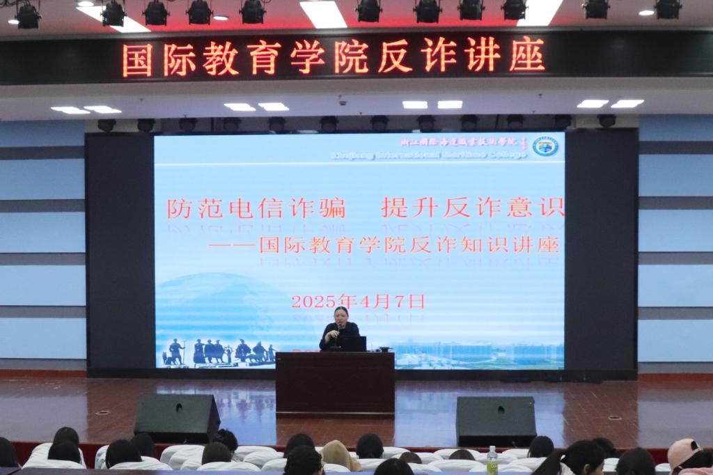 为进一步增强学生反诈意识,提高防范电信网络诈骗能力,4月7日,国际教育学院在图书馆四楼报告厅举行反诈宣传讲座,讲座邀请了新城公安分局王警官进行主讲,学院全体在校学生参加会议。
