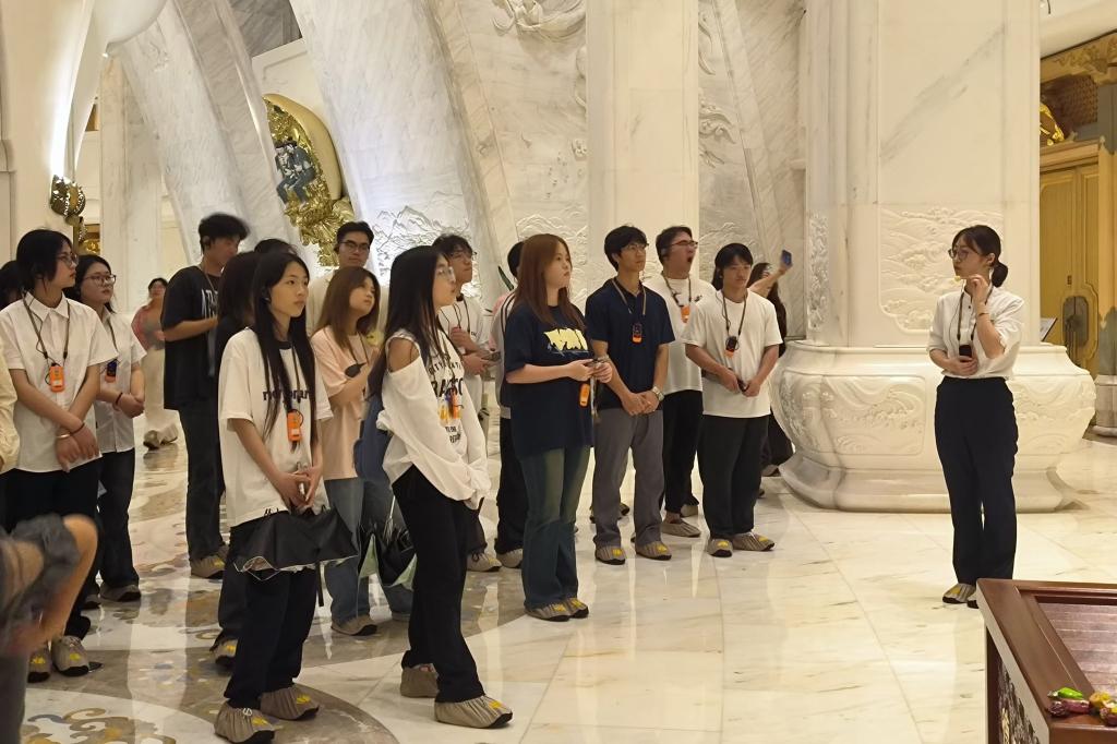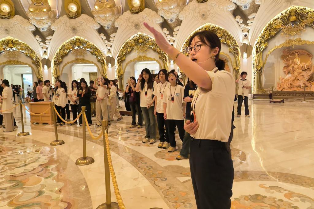 5月14日、5月21日,海洋旅游学院国际邮轮乘务管理(领队方向)4班、5班学生,在武雅娇、岳海静两位老师的带领下,分两批走进普陀山观音法界景区,开展专业课程现场教学活动。