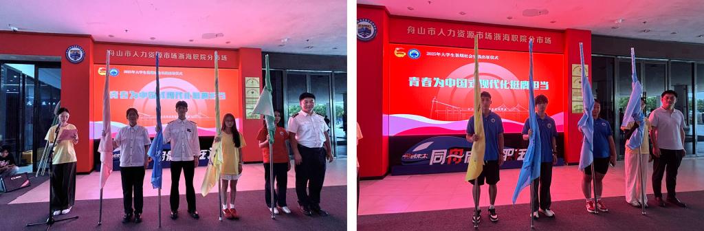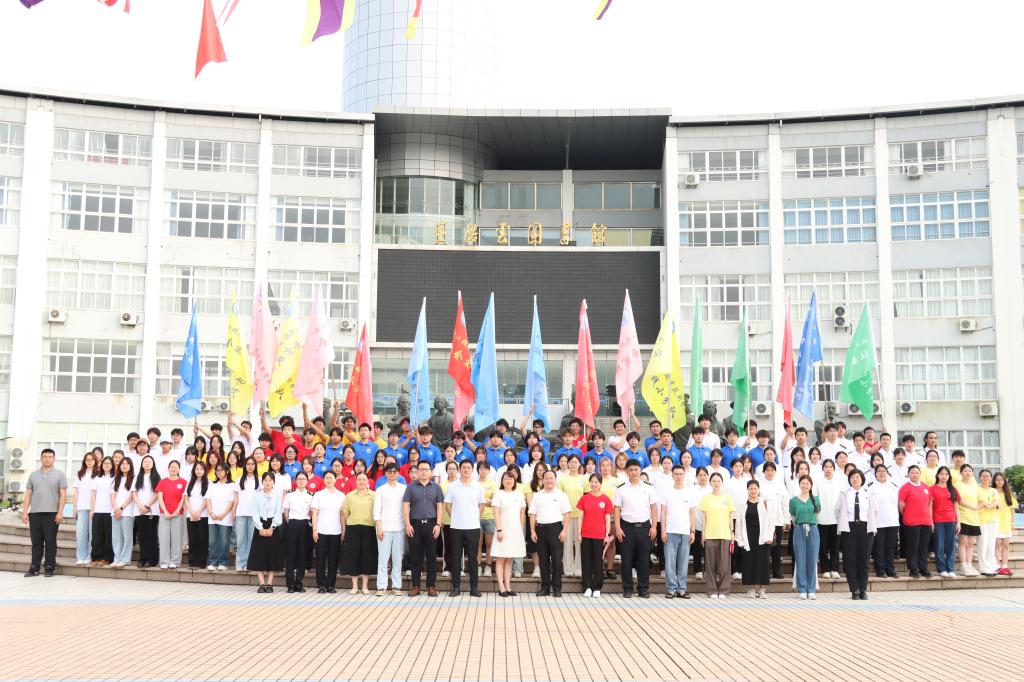 各二级学院党总支副书记为暑期社会实践团队授旗,一面面队旗既承载着躬行践履的使命担当,更昭示着新时代青年以实践丈量山河的壮志豪情。