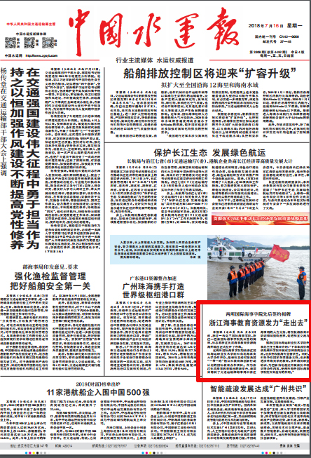 《中国水运报》头版:两所国际海事学院先后签约揭牌 浙江海事教育资源发力“走出去”