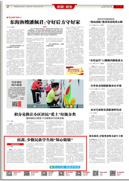 《舟山日报》:侯茜:少数民族学生的“知心姐姐”