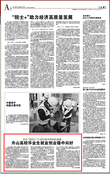 《科技金融时报》:舟山高校毕业生就业创业稳中向好