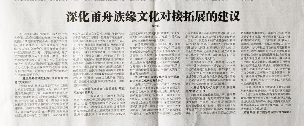 《舟山日报》:深化甬舟族缘文化对接拓展的建议