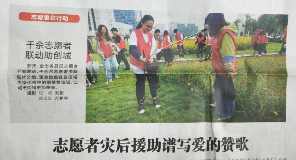 昨天,全市各县区志愿者全城联动,千余名志愿者按照包片分组,重点拾捡各自区域内绿化带中的烟蒂等垃圾,让城市变得更加美丽。(刘俊 方梦宇)