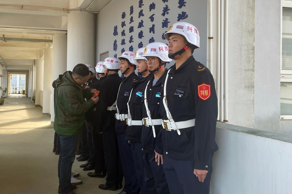 据悉,区别于日常纠察部门,文明纠察队是由航海工程学院全体学生干部组成,管理覆盖面更广、组织力量更强,贯穿同学们的生活、学习,重点整治同学们在课间、晚自修等时段秩序不规范现象,为深化学院准军事化管理改革、推进“双高”建设添砖加瓦、夯实基础提供力量支撑。(航海工程学院)