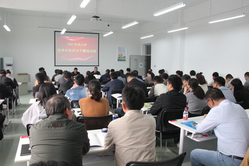 市委政法委副县处长级干部鲍浩宽代表委领导作培训动员。浙江海洋大学二级教授、原党委副书记黄建钢,我校周剑敏教授,市委政法委综治中心主任顾建龙,浙江海洋大学经管学院书记易传剑,市委党校副教授丁友良,普陀区网信办副主任缪增辉分别作了精彩的讲座。培训课程涵盖了自贸区建设发展规划解读、数字化改革与数字法治系统建设、共同富裕“共享”实现形式、突发事件与网络舆情处置等内容。学员们听课之余,利用晚间开展分组研讨,并相互分享借鉴各地各部门的做法和经验。
