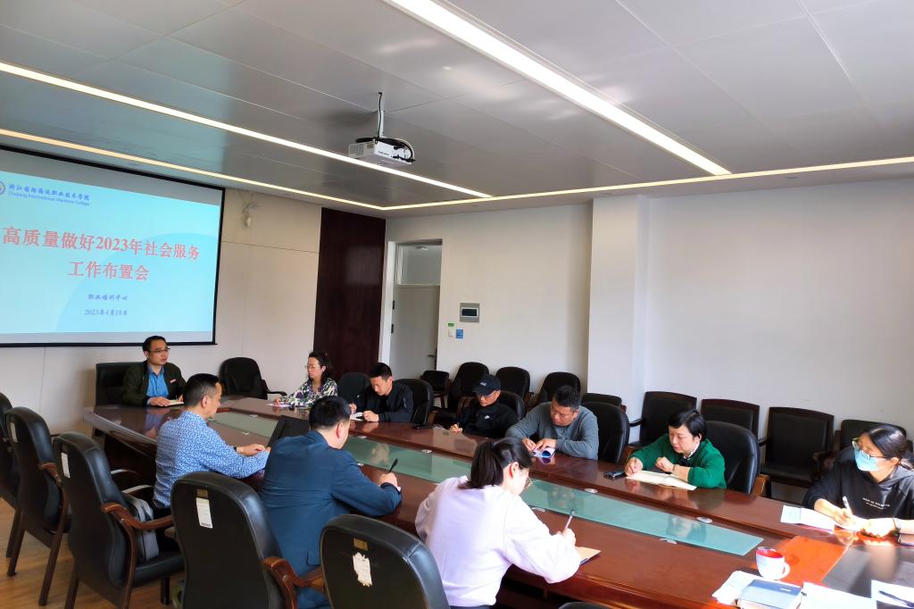 为贯彻落实《浙江省教育厅办公室关于高质量推进 2023 年成人教育有关民生实事的通知》精神,分析新形势新任务,研究布置2023年社会服务工作,4月18日上午,职业培训中心在社会服务楼308会议室召开高质量做好2023年社会服务工作布置会,各二级学院社会服务负责人、培训专员、职业培训中心成员参加会议,会议由职业培训中心主任苏峰主持。