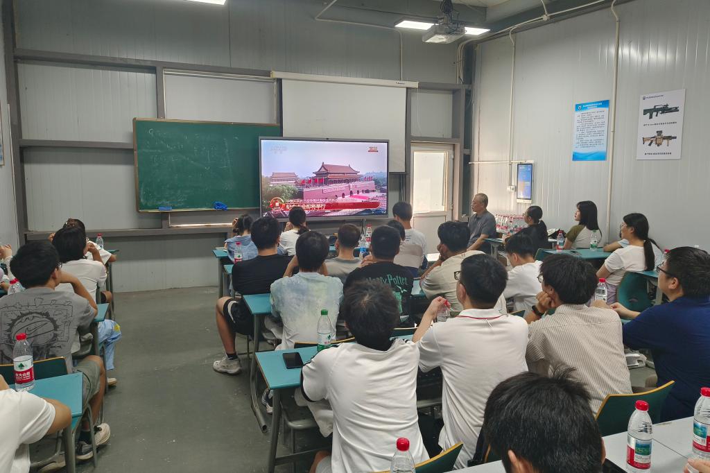 培训期间恰逢纪念中国人民抗日战争暨世界反法西斯战争胜利70周年纪念日。9月3日上午,全体师生齐聚观礼屏幕前,当雄壮的阅兵方阵迈过天安门广场,以钢铁洪流之势展现国威军魂时,会场内肃然起敬。这场特殊的“国情课”让大家更真切体会到:海上安全能力不仅关乎个体与团队的存亡,更是捍卫国家海洋权益、建设海洋强国的基础——今日锤炼的每一项求生、急救、防火技能,都将融入守护蓝色国土的时代责任。